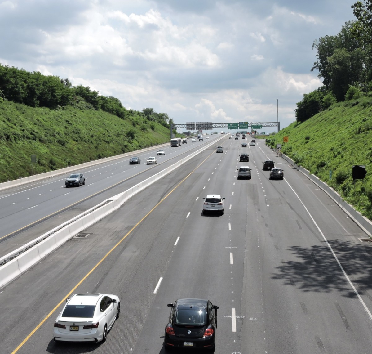 A traffic shift in June moved three lanes of northbound and southbound traffic into their permanent alignments (see right) from north of the Pendell/Business U.S. 1 exit through to the Turnpike’s Bensalem Interchange. From there, these Section RC2 improvements connect with the six lanes that were completed in 2022 under the Section RC1 contract.