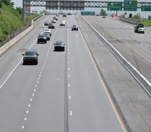 With traffic in its new alignment, PennDOT’s contractor began paving the final “wearing course” one lane at a time to wrap up the $111 million project this summer, a year ahead of the original contract completion date.